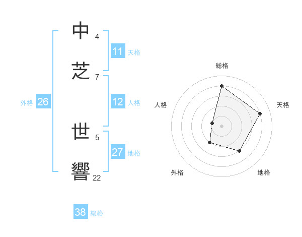 中芝 世響さんの総格は38画の4点!