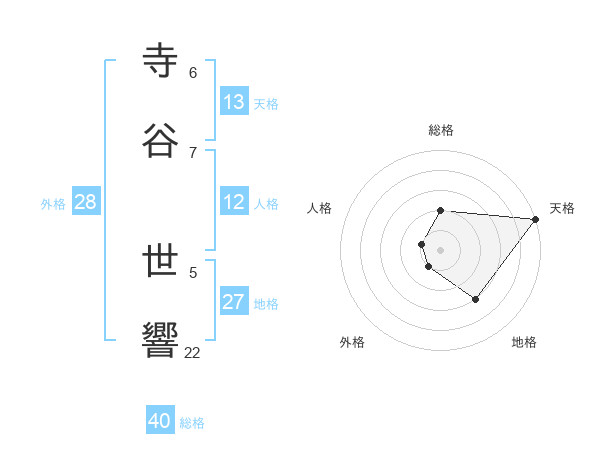 寺谷 世響さんの天格は13画の5点!