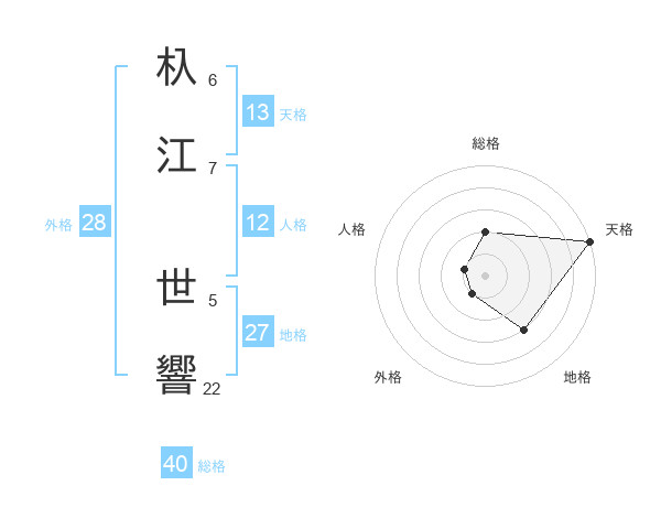 杁江 世響さんの総格は40画の2点!