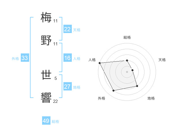梅野 世響さんの総格は49画の2点!