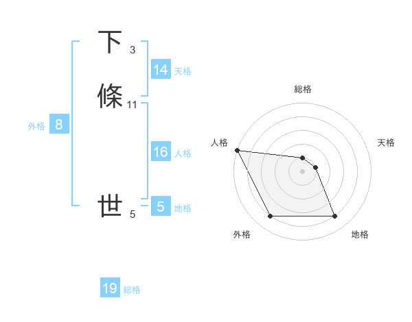 下條 世さんの地格は5画の4点!