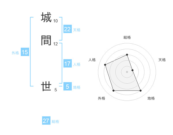 城間 世さんの総格は27画の3点!