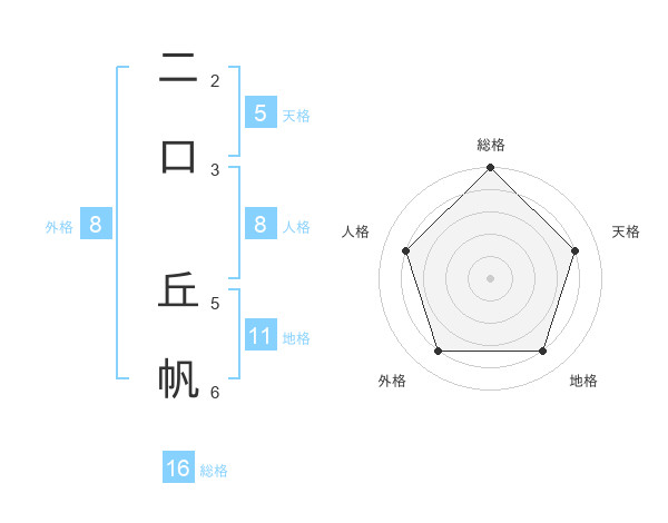 二口 丘帆さんを姓名の画数から五運を鑑定