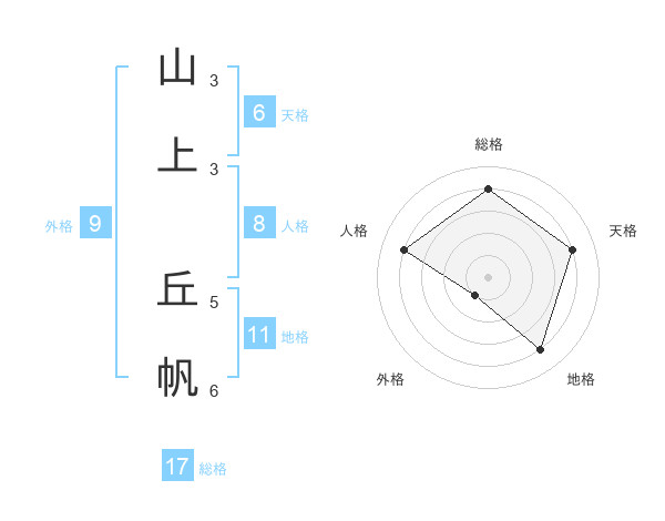 山上 丘帆さんを姓名の画数から五運を鑑定