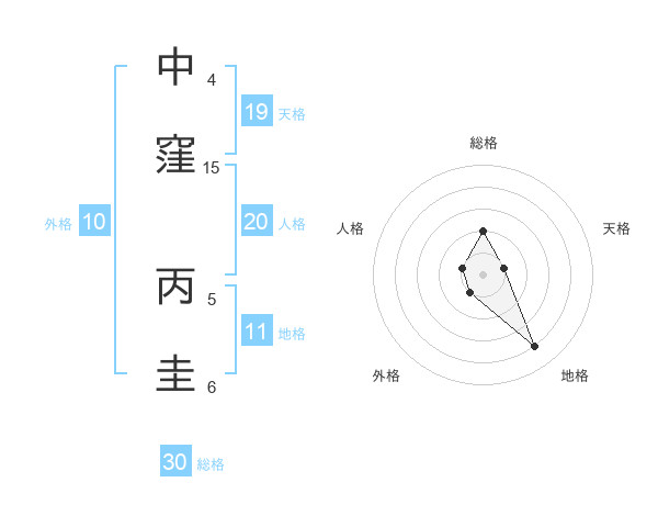 中窪 丙圭さんを姓名の画数から五運を鑑定