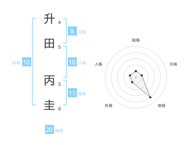升田 丙圭さんを姓名の画数から五運を鑑定