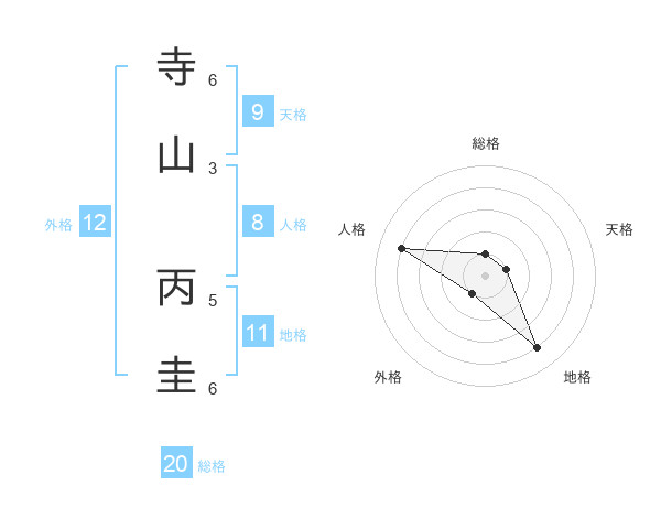 寺山 丙圭さんの総格は20画の1点!
