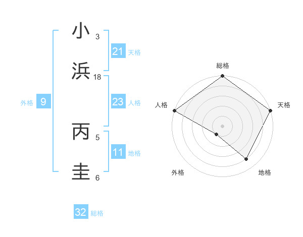 小浜 丙圭さんを姓名の画数から五運を鑑定