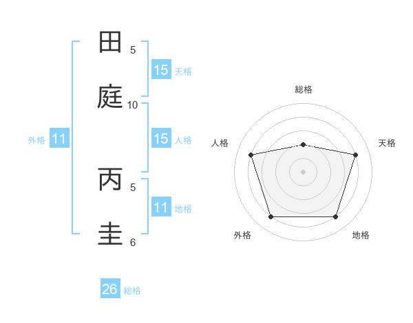 田庭 丙圭さんの総格は26画の2点!