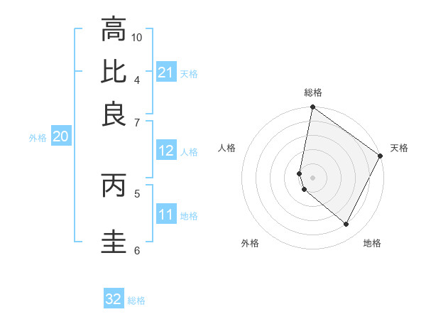 高比良 丙圭さんの総格は32画の5点!