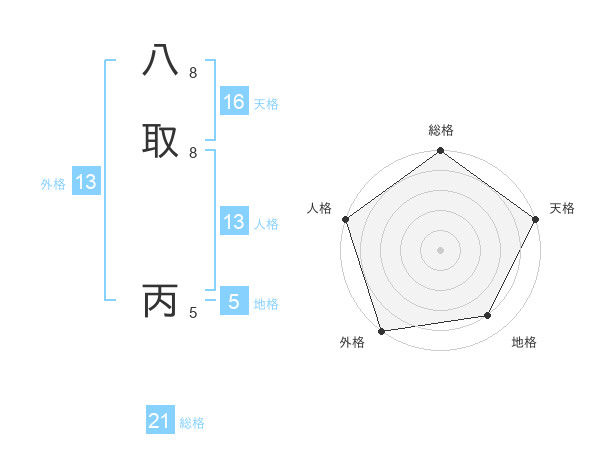 八取 丙さんの外格は13画の5点!