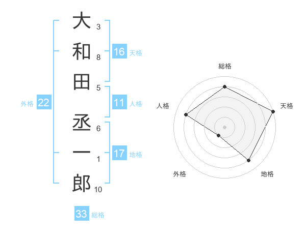 大和田 丞一郎さんの総格は33画の4点!