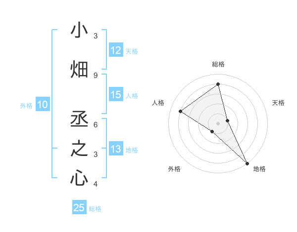 小畑 丞之心さんを姓名の画数から五運を鑑定