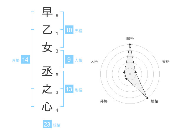 早乙女 丞之心さんの総格は23画の5点