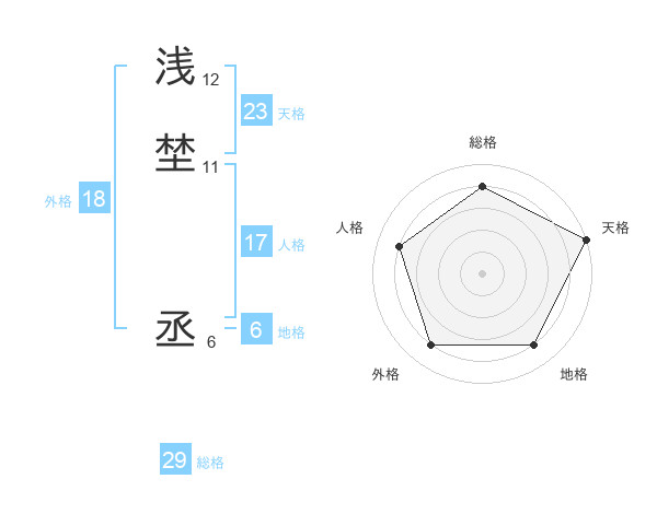 浅埜 丞さんの総格は29画の4点!