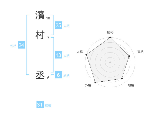 濱村 丞さんの総格は31画の5点!