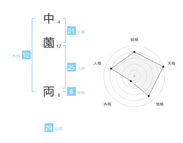中薗 両さんの天格は21画の5点!