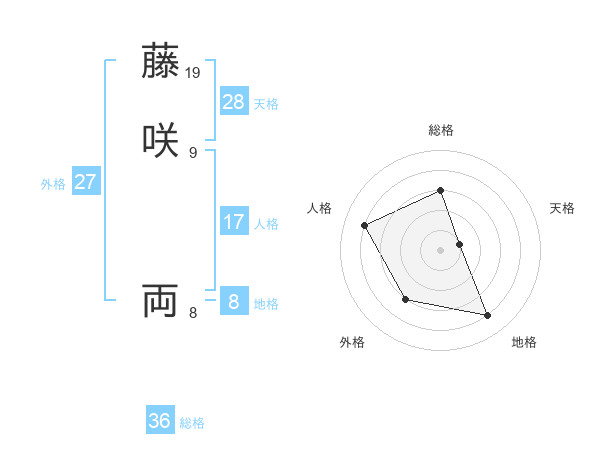 藤咲 両さんの外格は27画の3点!