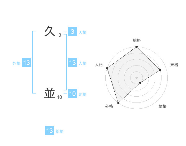 久 並さんの外格は13画の5点!