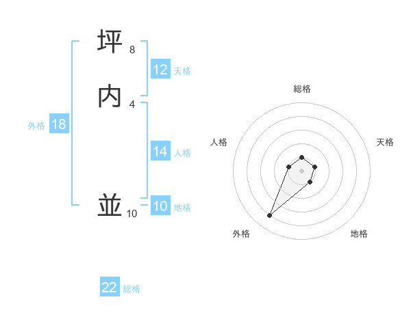 坪内 並さんの総格は22画の1点!