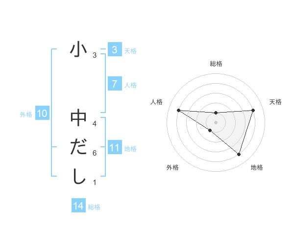 小 中だしさんの総格は14画の1点!
