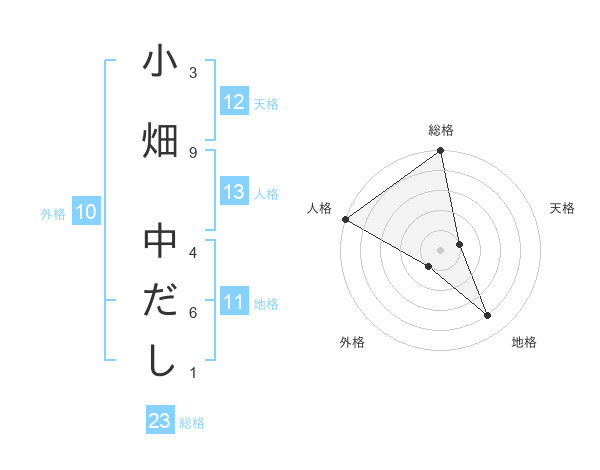 小畑 中だしさんを姓名の画数から五運を鑑定