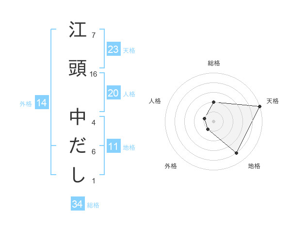 江頭 中だしさんを姓名の画数から五運を鑑定