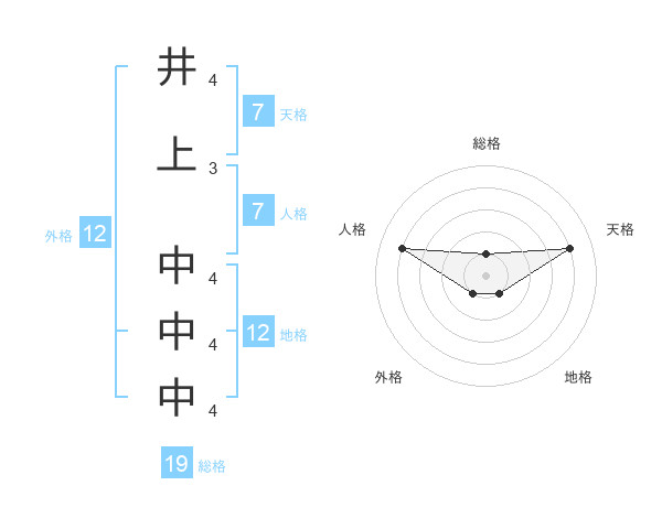 井上 中中中さんの地格は12画の1点!