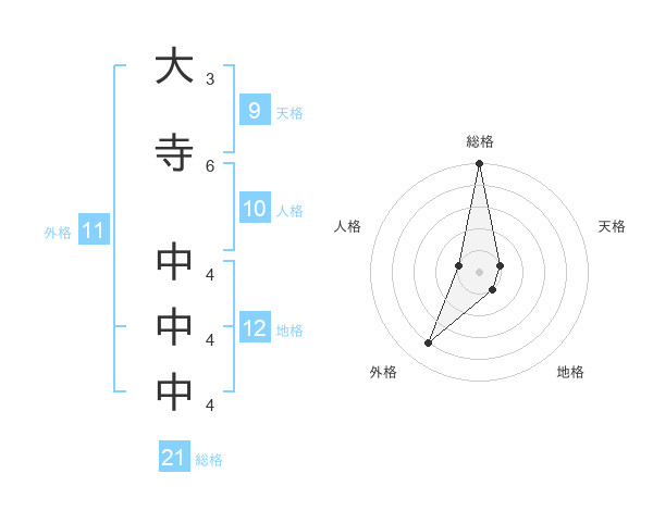 大寺 中中中さんを姓名の画数から五運を鑑定