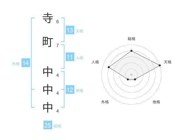 寺町 中中中さんを姓名の画数から五運を鑑定