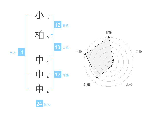 小柏 中中中さんを姓名の画数から五運を鑑定