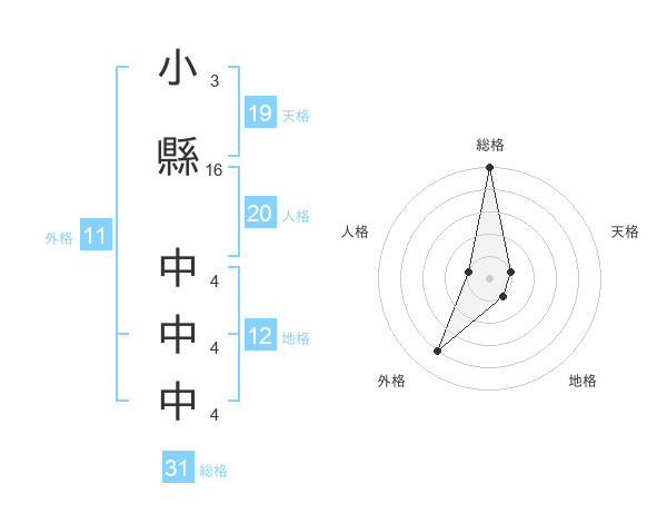 小縣 中中中さんを姓名の画数から五運を鑑定