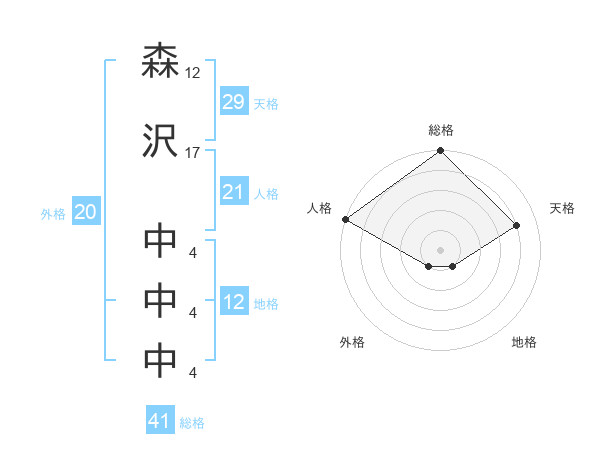 森沢 中中中さんを姓名の画数から五運を鑑定
