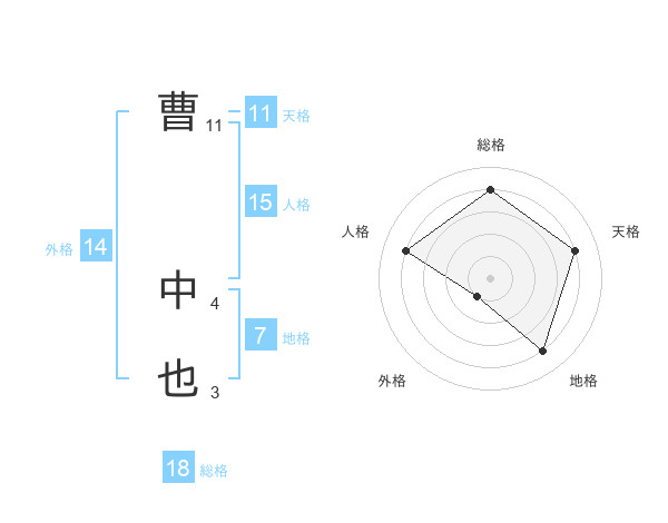 曹 中也さんの天格は11画の4点!