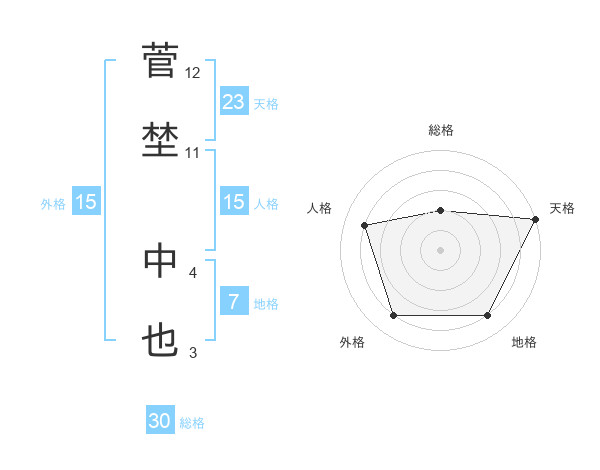菅埜 中也さんを姓名の画数から五運を鑑定