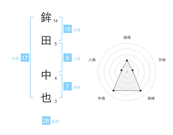 鉾田 中也さんの天格は19画の1点!