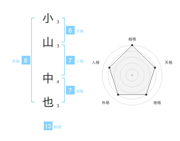 小山 中也さんの総格は13画の5点!