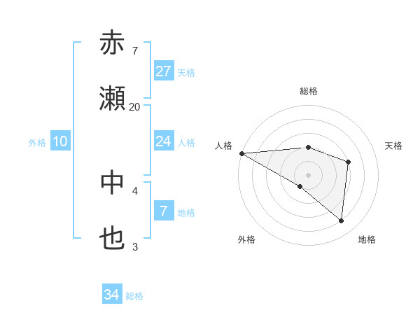 赤瀬 中也さんを姓名の画数から五運を鑑定