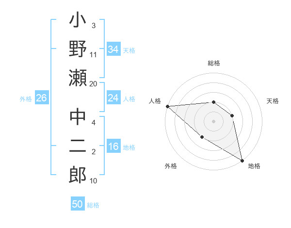 小野瀬 中二郎さんを姓名の画数から五運を鑑定