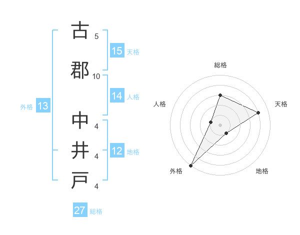 古郡 中井戸さんを姓名の画数から五運を鑑定