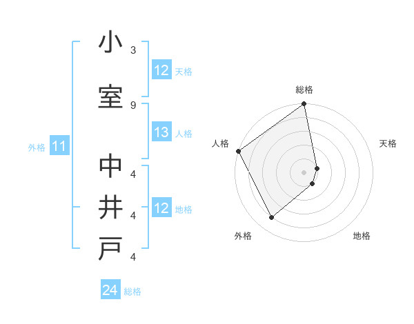小室 中井戸さんを姓名の画数から五運を鑑定