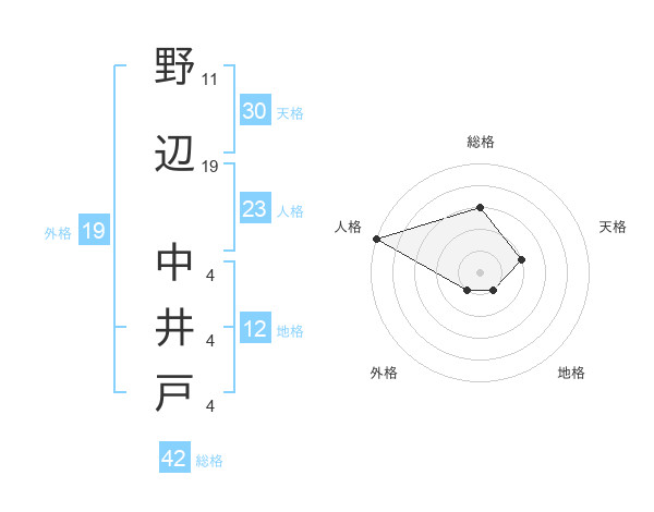 野辺 中井戸さんの総格は42画の3点!