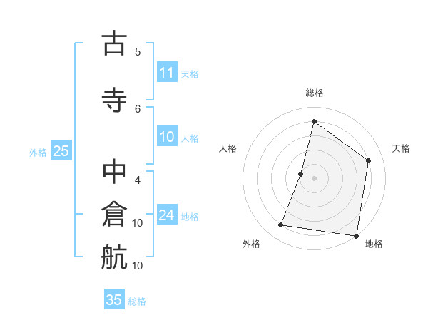 古寺 中倉航さんの地格は24画の5点!