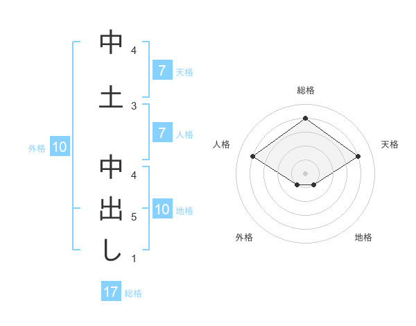 中土 中出しさんの総格は17画の4点!