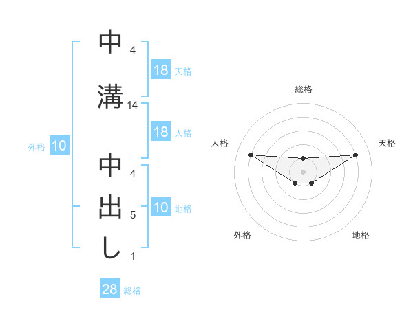 中溝 中出しさんの総格は28画の1点!