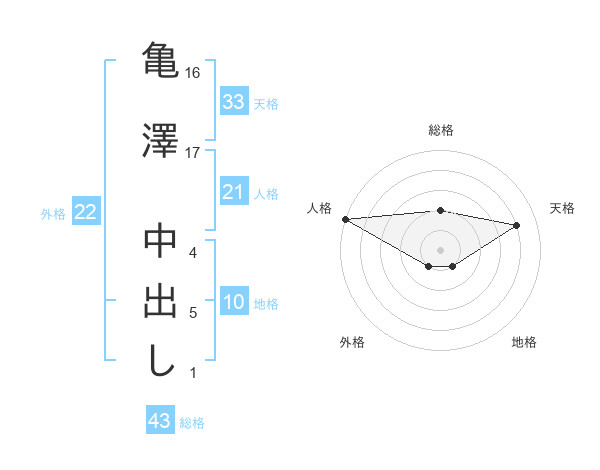 亀澤 中出しさんを姓名の画数から五運を鑑定