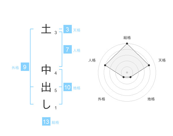 土 中出しさんの総格は13画の5点!