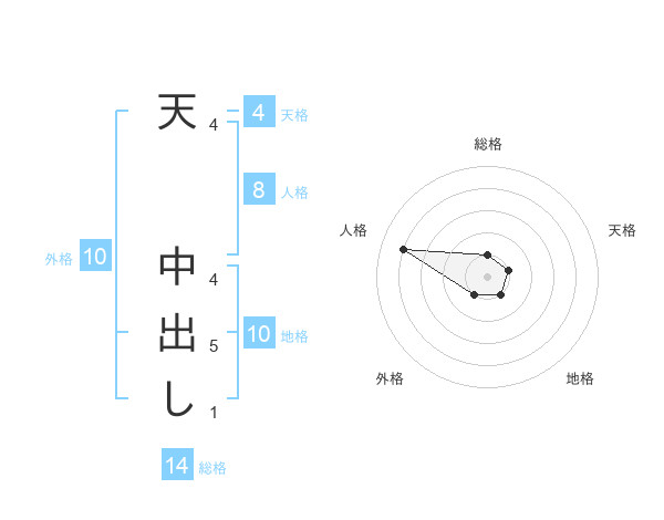 天 中出しさんの総格は14画の1点!