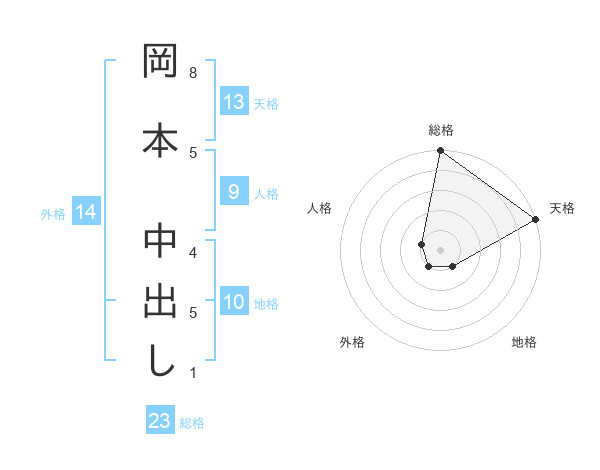 岡本 中出しさんを姓名の画数から五運を鑑定