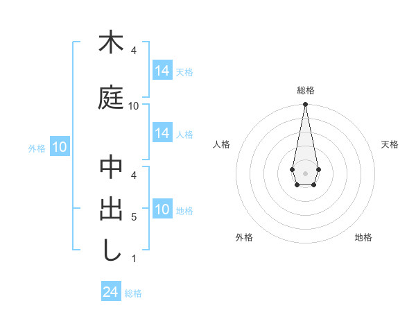 木庭 中出しさんの総格は24画の5点!